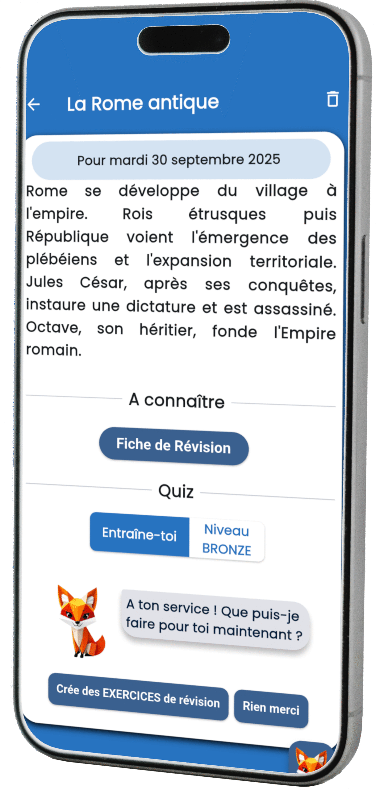 Plan de révision personnalisé, récompenses (XP) et challenges entre amis.